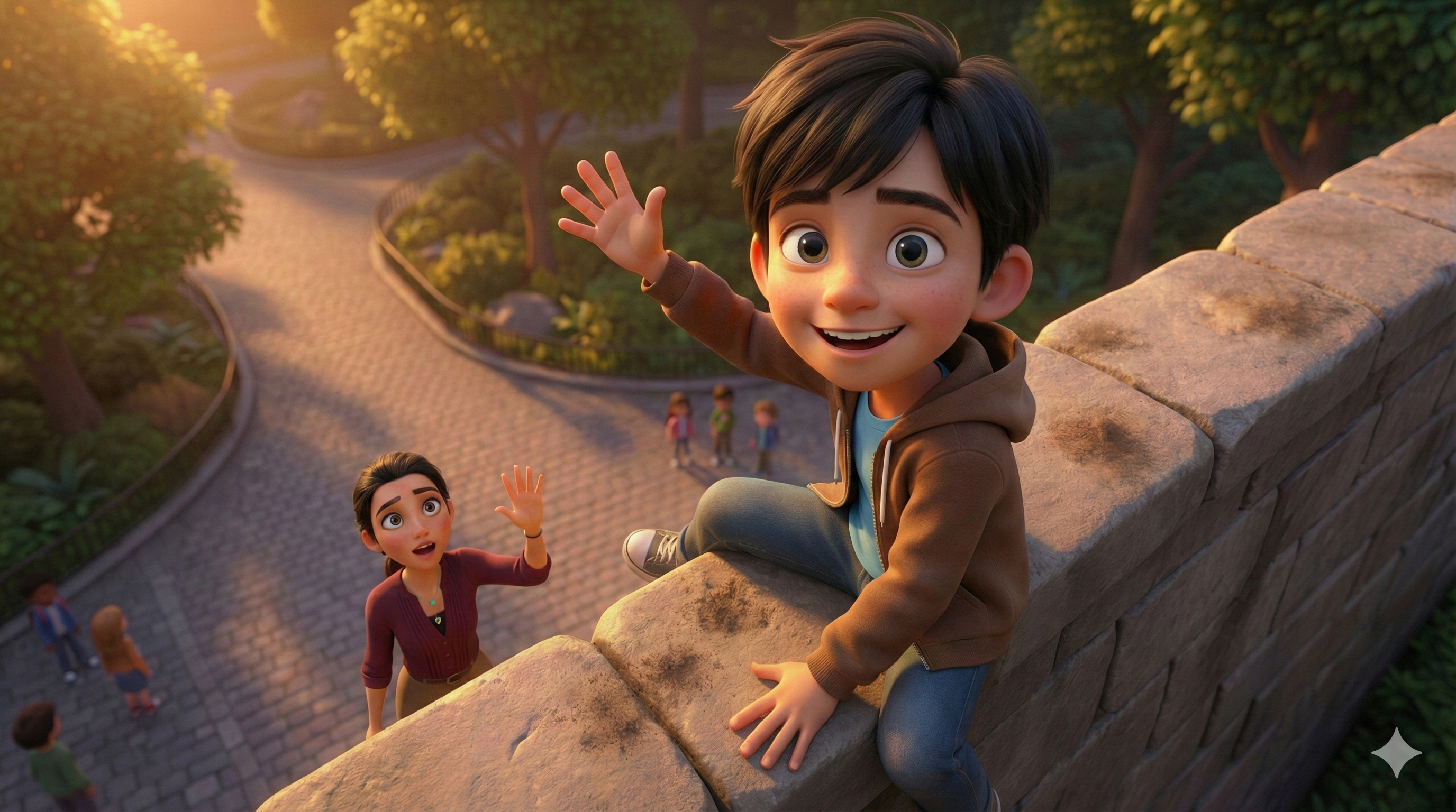 Rüzgar, tüm gücünü toplayarak duvara tutundu ve yukarı tırmandı! Aşağıya baktığında Özge Öğretmen'i gördü. "Öğretmenim, buradayız!" diye bağırdı. Sonunda başarmışlardı!