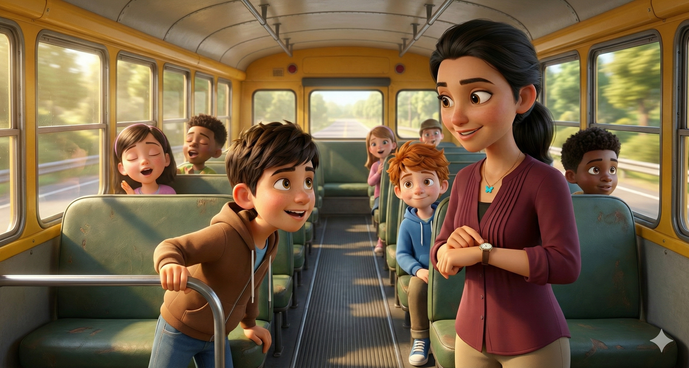 Bütün sınıf neşe içinde sarı okul otobüsüne bindi. Tekerlekler dönmeye başladığında herkes şarkılar söylüyor, camdan dışarıyı izliyordu. Yolculuk çok keyifliydi ama Aslan yerinde duramıyordu. Meraktan içi içine sığmayarak sordu: