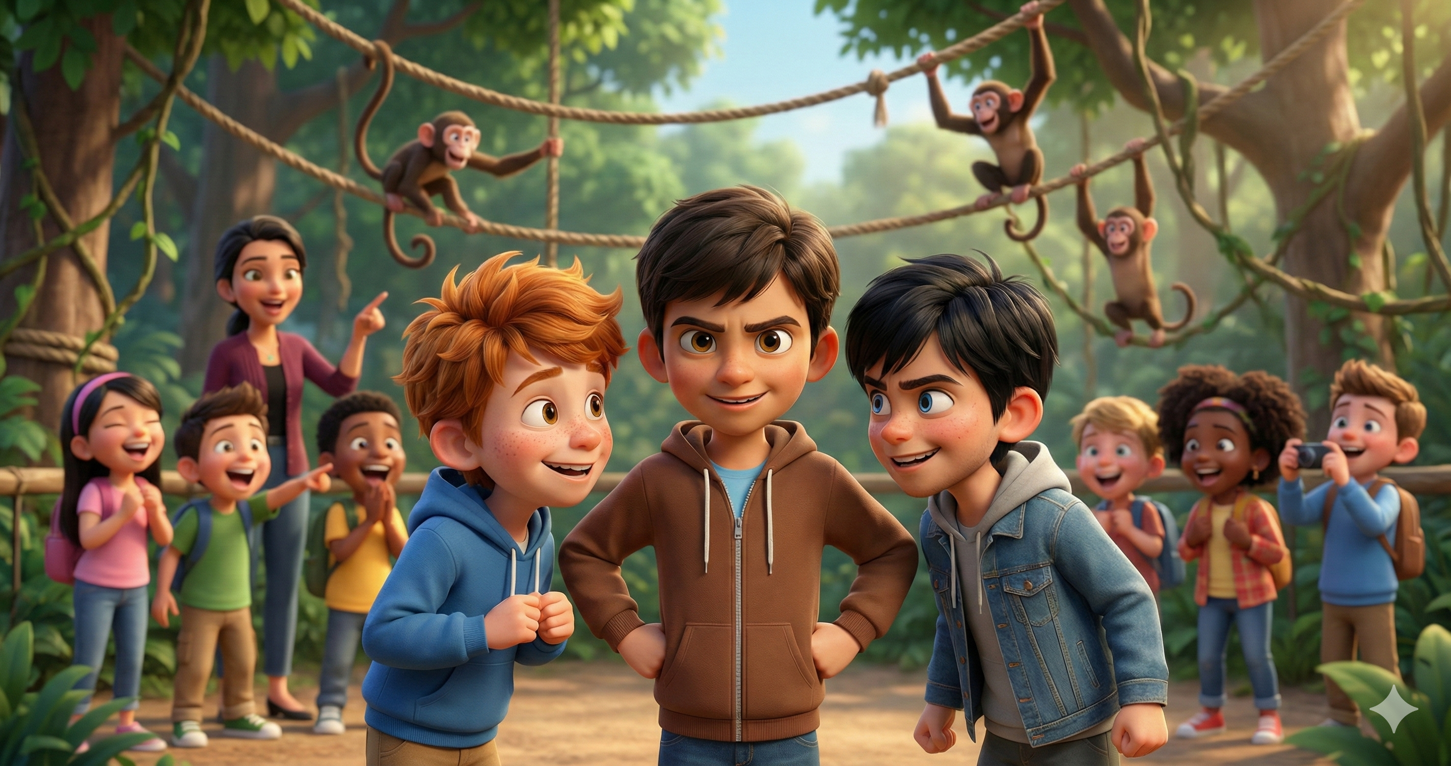 Özge Öğretmen, sınıfı sıraya sokarak önce sevimli maymunların olduğu bölüme götürdü. Maymunlar daldan dala atlıyor, komik sesler çıkarıyordu. Bütün sınıf kahkahalarla gülüyordu ama üç kişi hariç... Aslan, Rüzgar ve Demir’in aklı başka yerdeydi. Onlar, kocaman dişli, gizemli timsahları görmeyi her şeyden çok istiyorlardı!