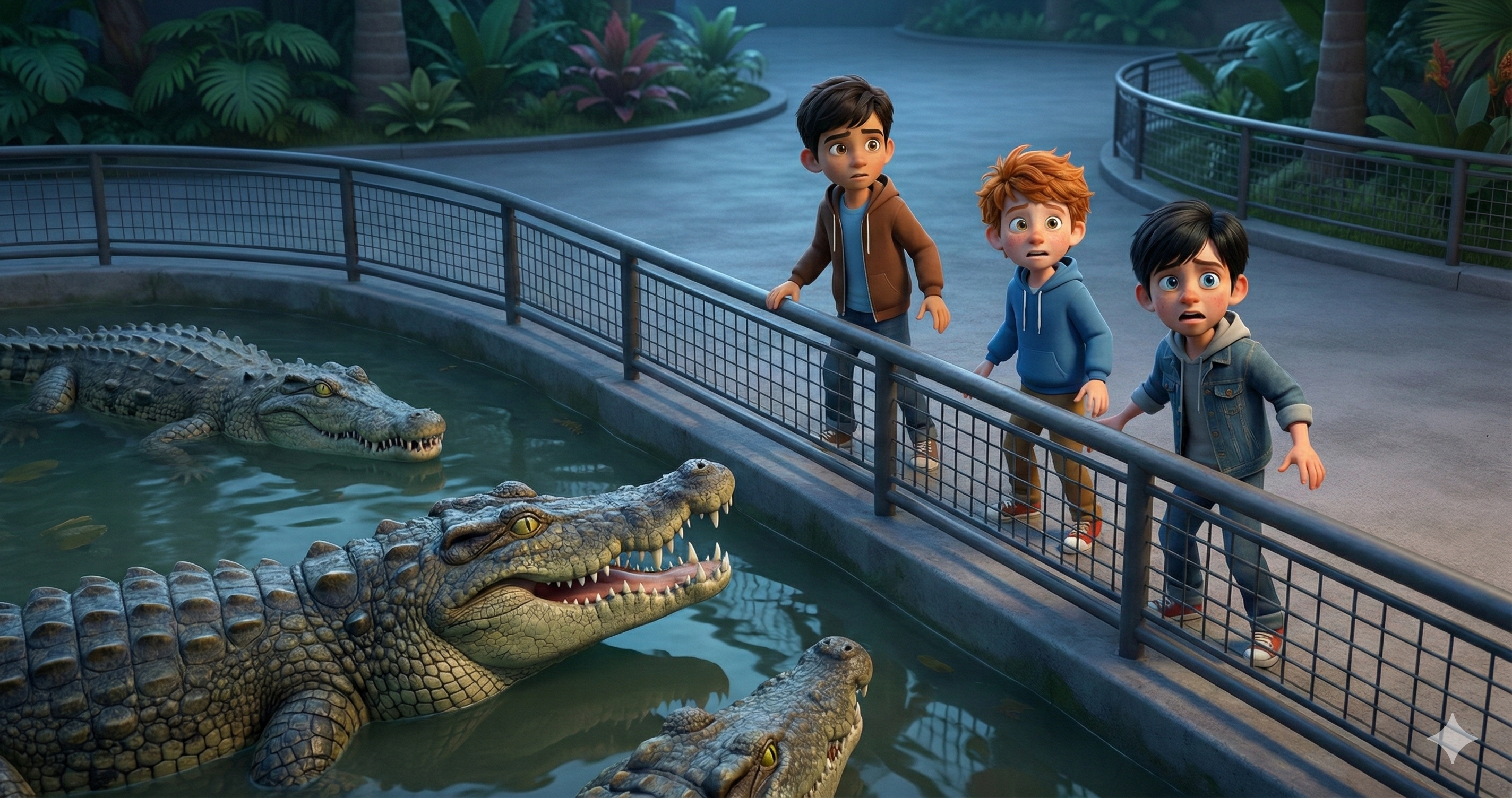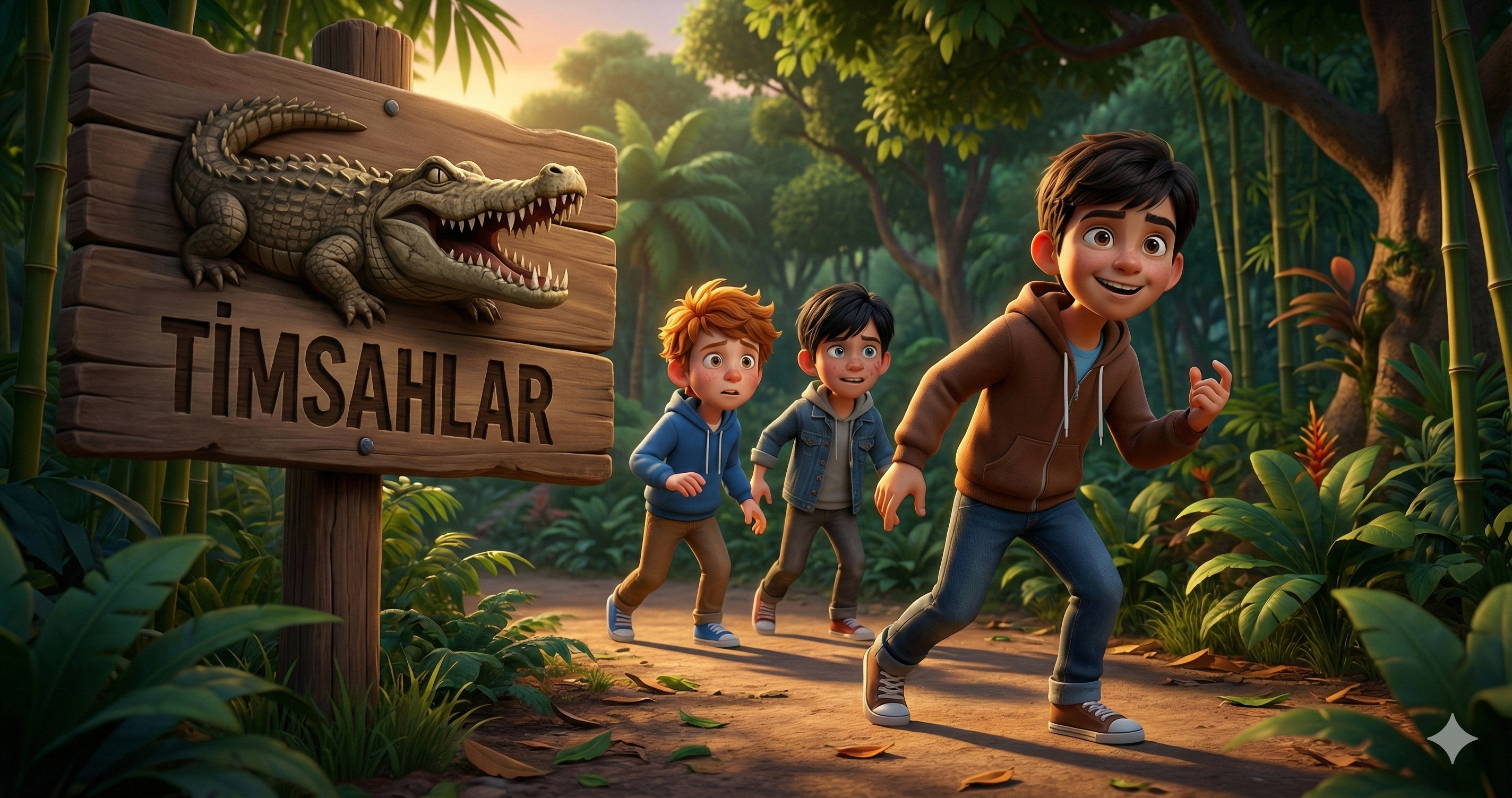 Timsahlar gerçekten de büyüleyiciydi; kocaman ağızları ve zırh gibi derileri vardı. Üç arkadaş hayran hayran onlara baktı. Ancak bir süre sonra arkalarına döndüklerinde korkunç bir gerçeği fark ettiler: Sınıf arkadaşları ve öğretmenleri ortada yoktu!